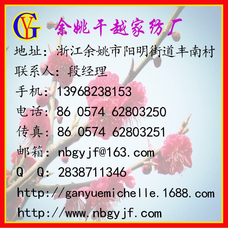 餘姚乾越傢紡廠坐落於中國富饒美麗的浙江,北鄰杭州灣畔,南擁杭甬高速,距中國著名東方港城寧波僅數十裡之遙的江南重鎮餘姚。是一傢專業從事中、高檔傢紡類產品、研究、設計、製造、銷售於一體的企業。憑借高素質的管理人才及專業技術人員,積極倡導新傢居、新廚房文化,致力於多樣化、系列化的傢居廚房產品,向人們展示一種全新的傢居廚房新理念。