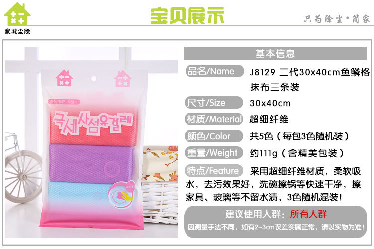 - 名稱:二代3040cm魚鱗格抹佈三條裝