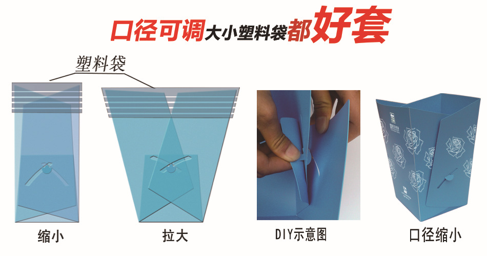 - 1、開口可調,適配大小塑料袋