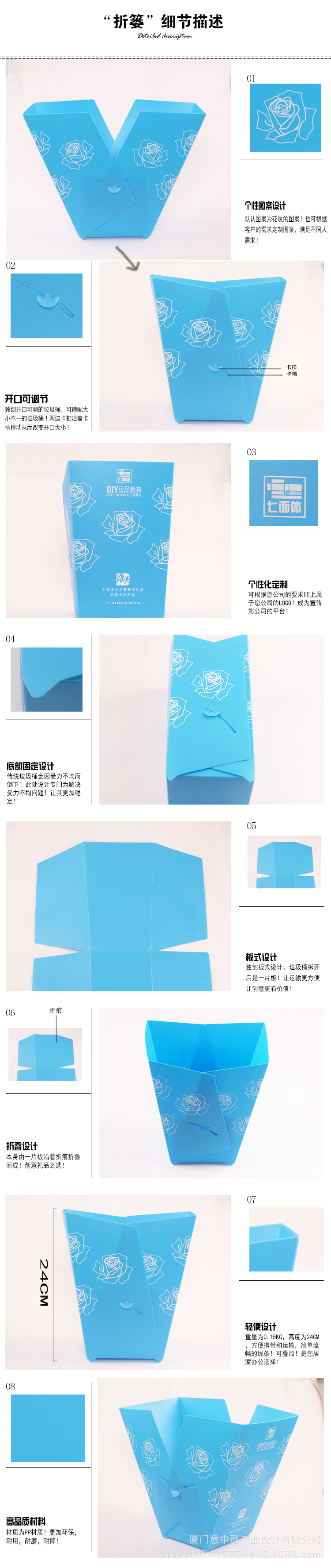 - 名稱:DIY花朵紙簍,可折疊,拆洗垃圾桶