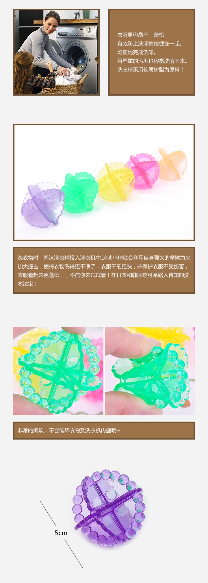 洗衣物時,將這洗衣球投入洗衣機中,這些小球就會利用自身強大的摩擦力來加大