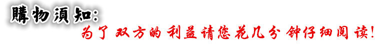 感謝您選擇本店開啟您歡樂的購物時光。為瞭更好的維護您的權益,有一段愉快的購物旅程,請您在購買之前仔細的閱讀以下提示: