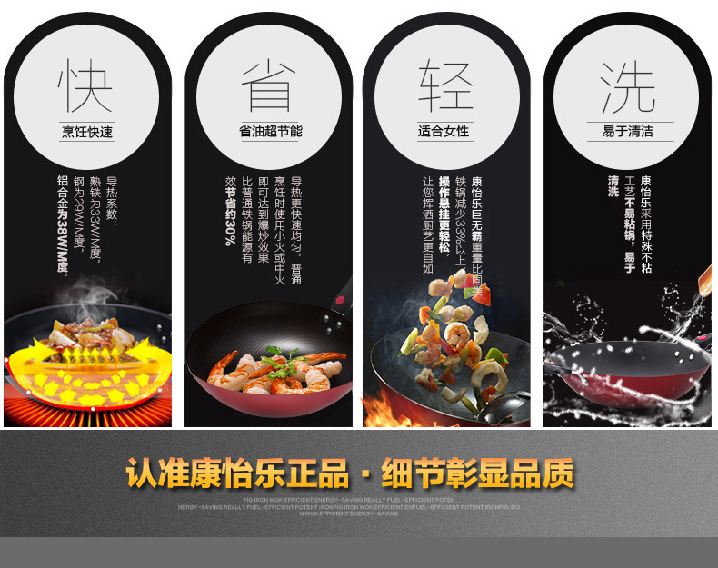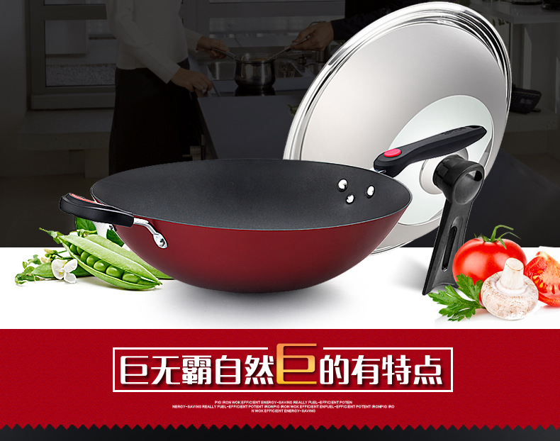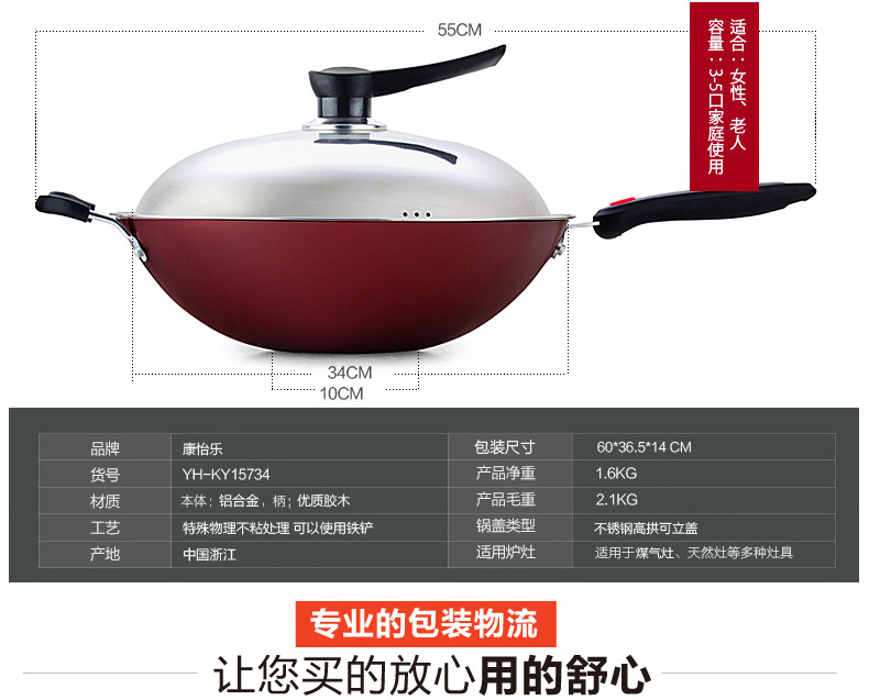 康怡樂34cm中式圓底不粘無油煙鍋套裝 燃氣灶專用