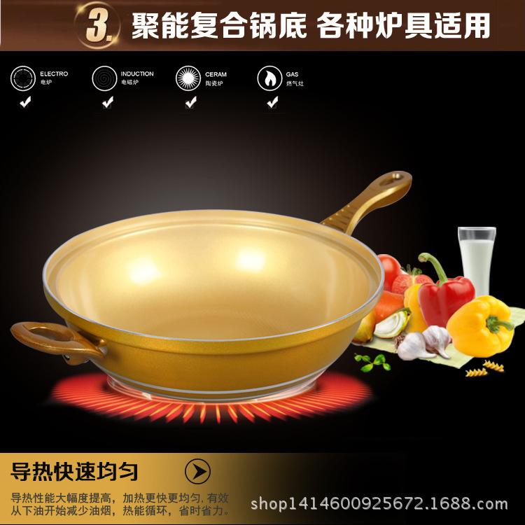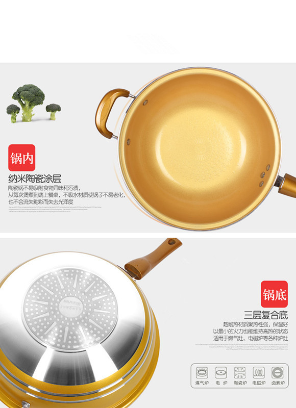 高強度復合底,使得鍋可適用煤氣灶、電磁爐、電爐等多種灶具。