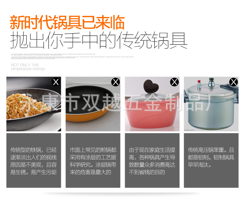 4.請勿空燒或乾燒鍋,否則會導致鍋底變形、變色、復底部分脫落等不良後果。