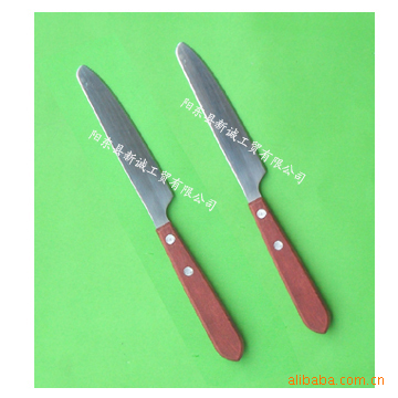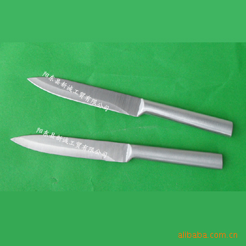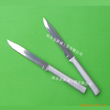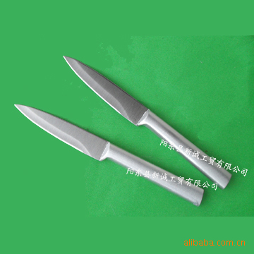 高質量一系列鋁製刀柄不銹鋼廚用刀:果皮刀、萬用刀、麵包刀、廚師刀、切肉刀、牛排刀等。精細鏡麵或沙麵拋光,刀口鋒利,高檔鋁製刀柄,質量保證歡迎客戶來樣加工。
