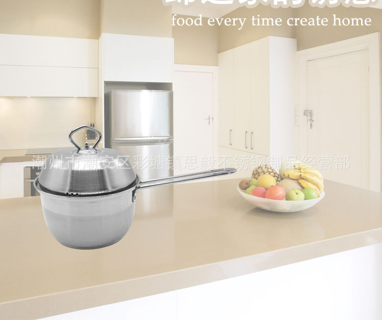 潮州市潮安區彩塘鎮思毅不銹鋼製品經營部經銷的蒸鍋、廚具、酒店用品、不銹鋼禮品套裝、不銹鋼贈品、免火再煮鍋、火鍋、麵盆、沙拉盆、飯盒、水壺、快餐盤、方盤、份數盆、湯桶、湯鍋、奶鍋、烤魚爐、真空提鍋、保溫桶品種齊全、價格合理。潮州市潮安區彩塘鎮思毅不銹鋼製品經營部實力雄厚,重信用、守合同、保證產品質量,以多品種經營特色和薄利多銷的原則,贏得瞭廣大客戶的信任。