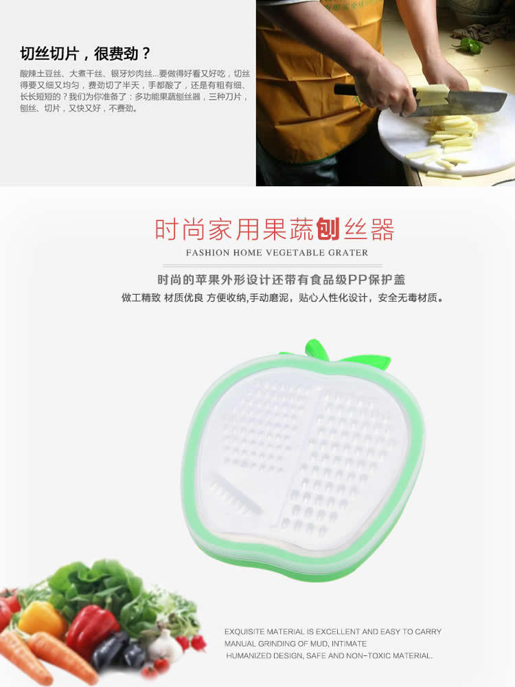 商品名稱:精裝蘋果造型三合一蔬果切絲切片磨泥器