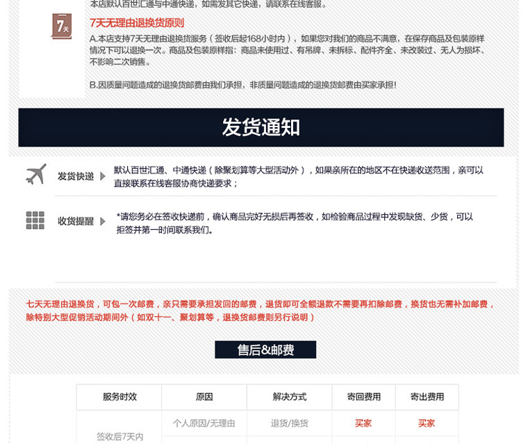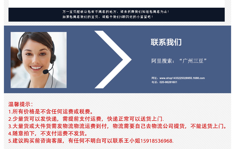 3.大量貨或大件貨需發物流物流運費到付,物流需要自己去物流公司提貨,不能送貨上門。