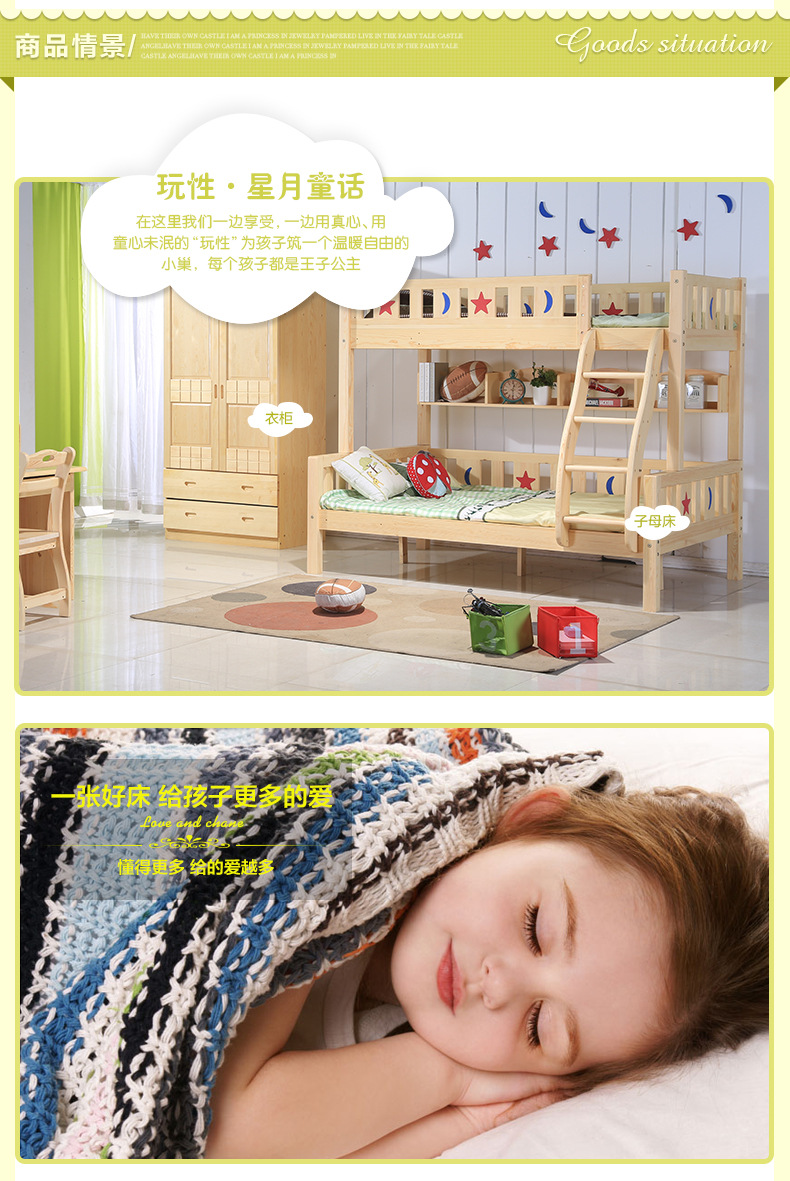 包安裝森方居新款松木床雙層床全實木兒童床子母床高低床上下鋪床