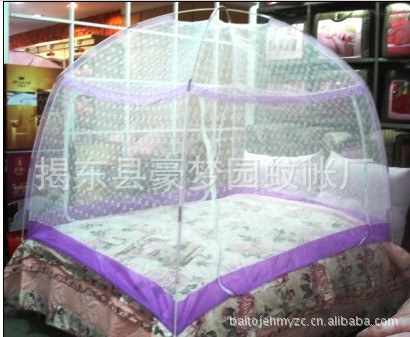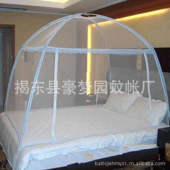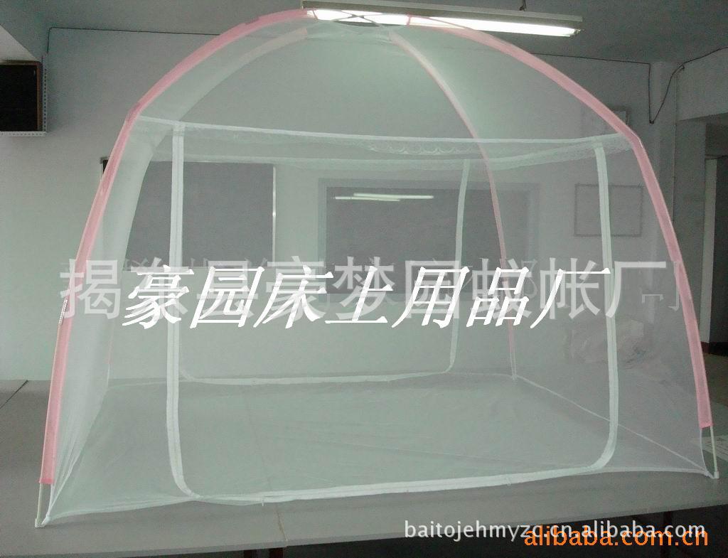 1.加大空間,新式高彎桿兩開門設計,帳紗加密,再小的蚊子也別想進來。使帳內空間加大加高,坐在其中可背靠床頭而無壓抑感。