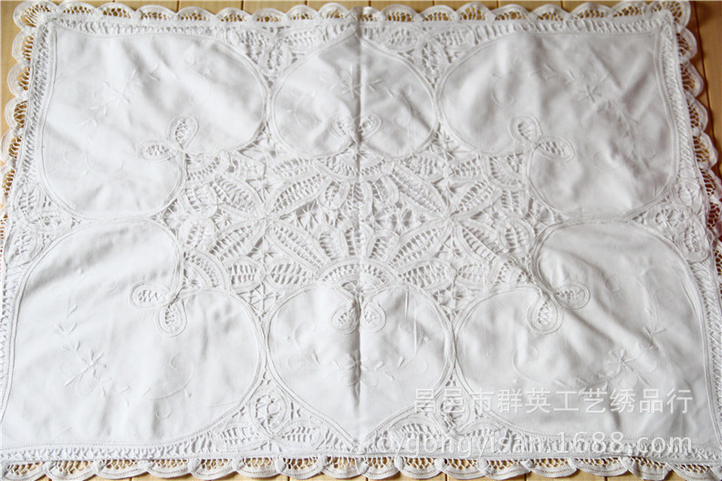 刺繡的一種,亦稱“抽紗”。是一種以棉線、麻線、絲線或各種織物為原料,經過繡製或編織而成的裝飾性鏤空製品。相傳在清末由歐洲傳入我國。早在公元4~5世紀的古埃及墓葬中便有類似的抽紗花邊和雕繡花邊。中世紀歐洲花邊生產集中於修道院。15世紀,意大利、比利時、法國都發展花邊生產。17世紀是歐洲花邊生產的繁榮時期,意大利威尼斯花邊著稱於世。19世紀英國發明花邊織機,機製花邊問世,從而導致歐洲手工花邊的衰落。19世紀末,歐洲花邊傳入中國,愛爾蘭傳教士丁·馬茂蘭在山東煙臺開設培真女校,傳授花邊技藝。指用細紗刺繡、編結而成的生活用品。品種有“挑補花”、“雕繡”、“網扣”等。色調多為白色、淡黃、米色、淡綠和淡藍等。適宜作臺佈、床罩、枕套、靠墊、手帕和茶墊等。主要產地有山東、廣東、江蘇、浙江和上海等。棒槌花邊、青州府花邊(分為滿工花邊和鑲拼花邊兩種)、雕平繡、梭子花邊、即墨鑲邊、手拿花邊、百代麗花邊、刺繡花邊、編結花邊、機織花邊……滿工花邊以精棉線為原料,用平織、隔織、稀織、密織手法編結成各種花式,整體具有透雕藝術效果。鑲拼花邊是以編織花邊為主體,配鑲麻佈繡花而成。產品有盤墊、小鑲件和臺佈、床罩、花邊工藝傘等。