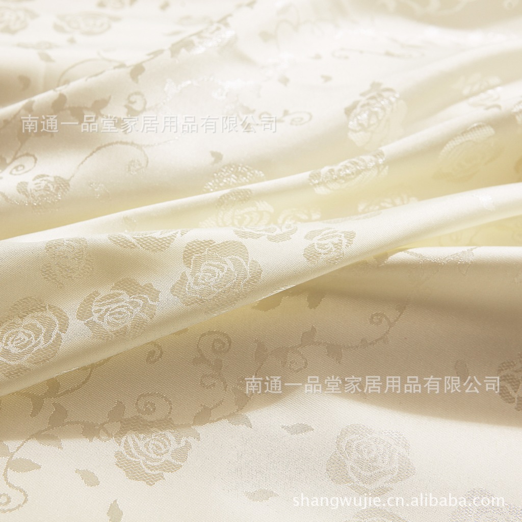高檔仿真絲大提花被芯麵料,T68D*T100d*173*105,現貨顏色有珍珠白/淺玉/淺粉/淺白四色,采用超細旦滌綸絲作原料,提花交織而成。它既有真絲的柔軟滑爽和光澤,又有棉的透氣性好,吸濕性強的優點。是做高檔被芯麵料的絕佳選擇。