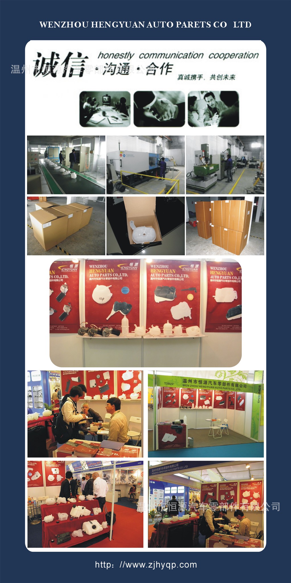 溫州市恒源汽車零部件有限公司,技術力量雄厚,設備先進 。公司大部分的生產設備都是采用進口專業設備和加工中心。產品的品質來自於先進的設備和現代化的管理理念。現有的產品系列有,膨脹水壺.水箱蓋.油箱蓋.水位傳感器等等。目前品種有300餘種,出口到南美.北美.中東.非洲.澳洲和歐洲等國傢與地區。也得瞭到瞭眾多客戶的高度好評與拍手贊同。公司從產品的研發,制造,銷售為一體,擁有廣大的市場並形成瞭一個顧客鏈,圍繞著我們顧客為中心,共同發展,共創輝煌的明天。