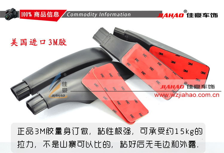 產品優點:無需鉆孔上螺絲,采用美國進口汽車專用3M膠帶(配帶3M膠水)直接用3M粘上即可,安裝方便、簡易、牢固!3M公司的中號是“不怕粘不住,隻怕取不下”。