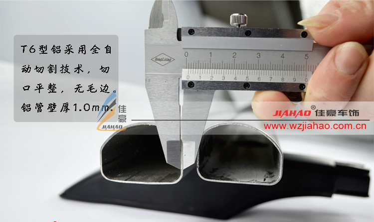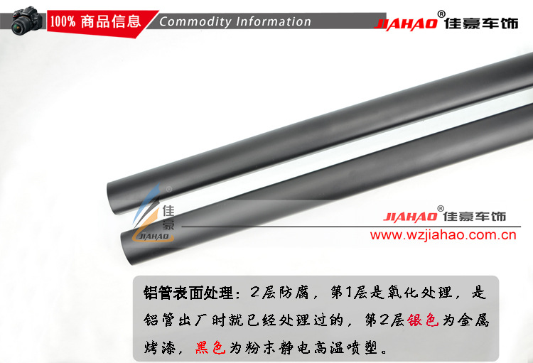 產品工藝:造型美觀,與愛車搭配線條流暢;時尚、豪華且具有動感!材料為鋁合金,表面均勻光亮、高溫金屬珠光烤漆和噴塑(黑色)處理表面,耐高溫、不老化、不變形、不褪色;支座為ABS+一手工程原料,牢固耐高溫。