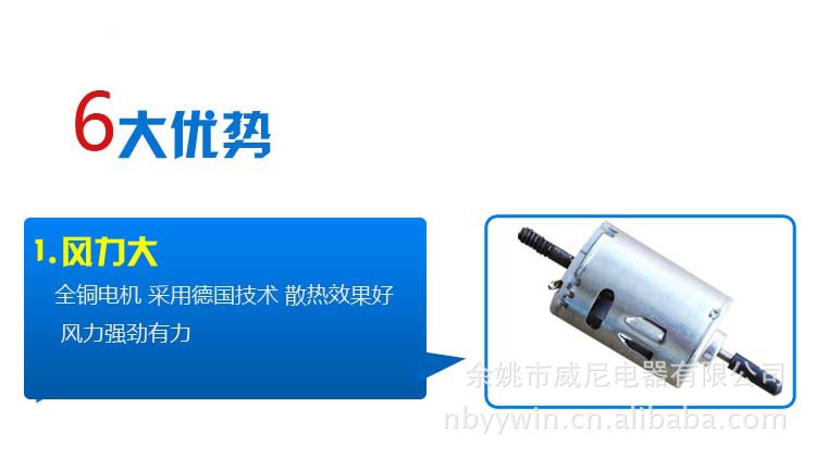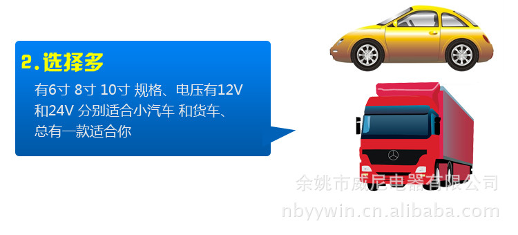 公司專業生產車用電器:汽車風扇、野營燈、聚光燈、警示燈、工作燈、檢修燈、吸塵器、充氣泵等汽車附件。公司經過幾年的努力,現已形成研發、生產、運輸及出口一條龍服務的生產型企業。產品遠銷歐洲,南美,日韓,亞洲等地。公司目前取得有三個專利:汽車風扇罩外觀設計專利兩個:ZL200730127991.0,ZL200730127992.5汽車風扇實用新型專利: ZL200730115133.9大部分產品也取得瞭CE和ROSH證書,部分產品取得瞭GS,UL,BS證書。