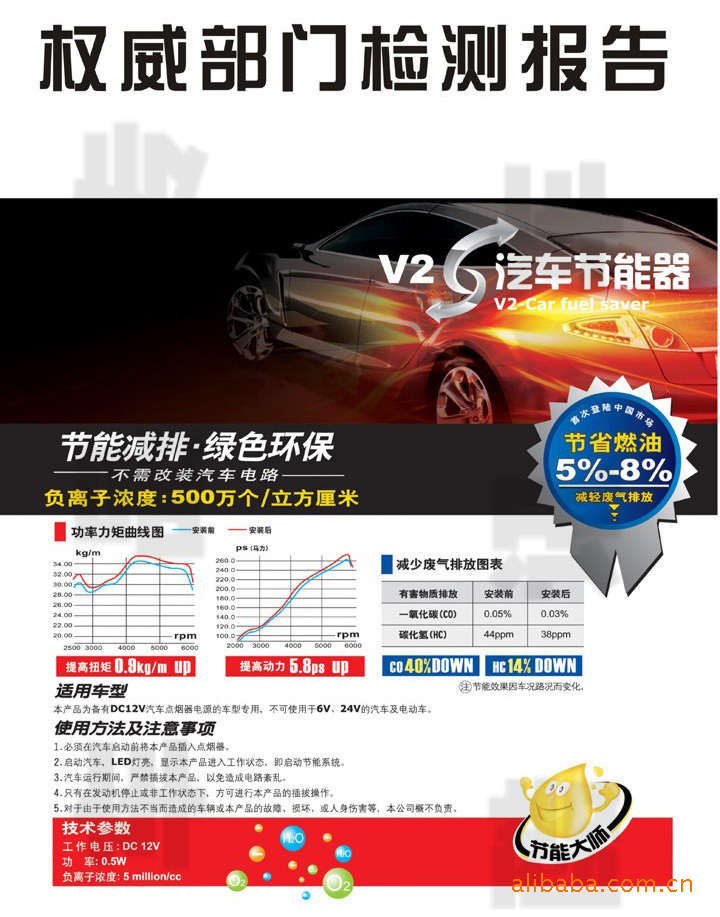 產品功能:本產品汲取日本最HOT節能環保技術理念,是卡爾康尼享有獨傢專利的節能產品。本產品通過抑制電氣系統在蓄電池電壓下降時引起的動力下降,在各系統間起到平衡效果等優化作用,顯著增強發動機的動力性能,促進燃油完全燃燒,減少發動機內部積碳,延長發動機和蓄電池的使用壽命,對新舊車輛起到養護作用,同時令使用狀況較差的車輛有效節省5-8%燃油,減少一氧化碳、碳氫化合物等不完全燃燒產物的排放,保護大氣環境