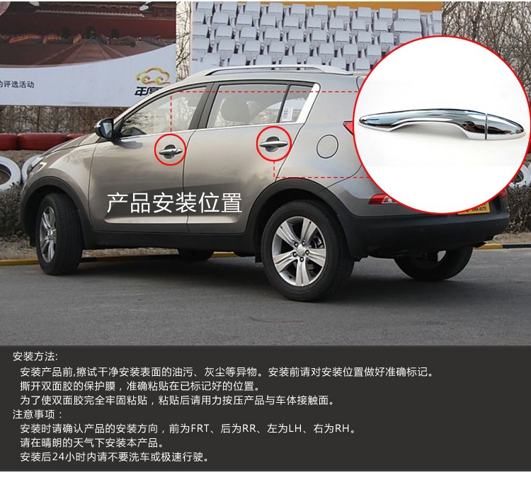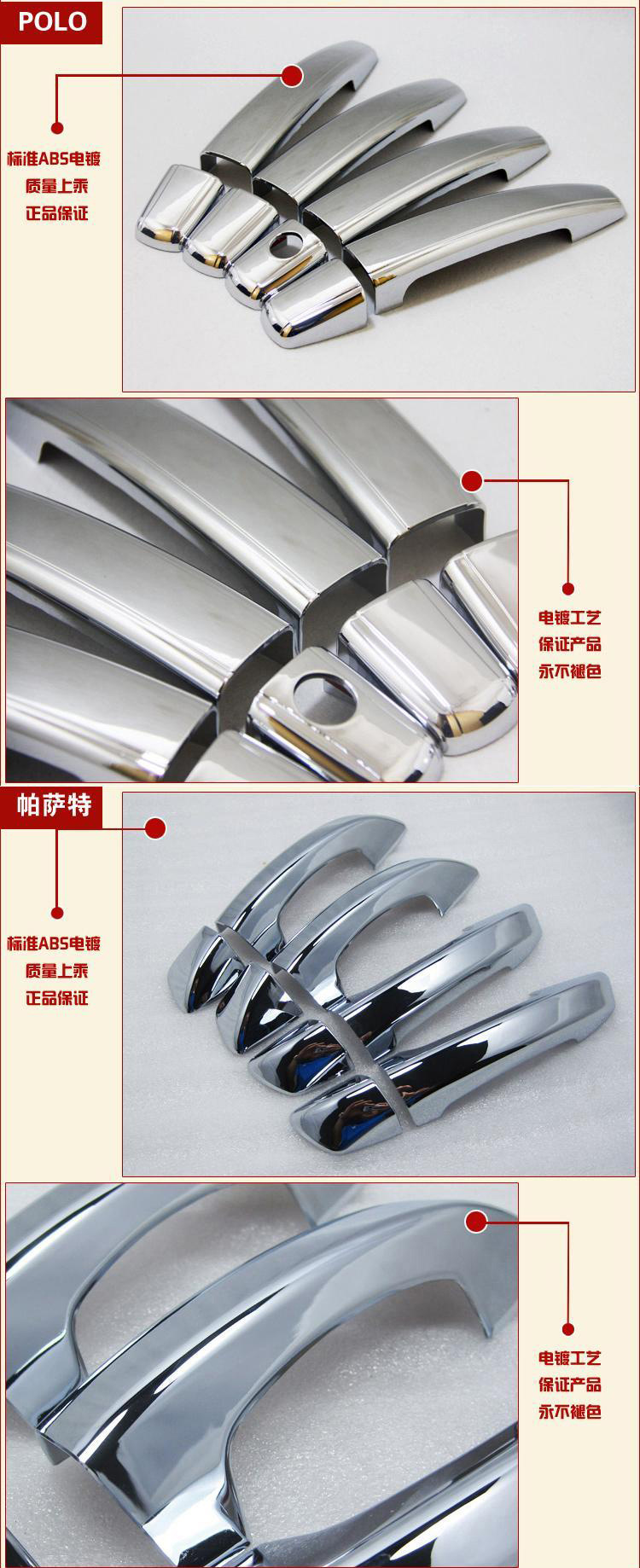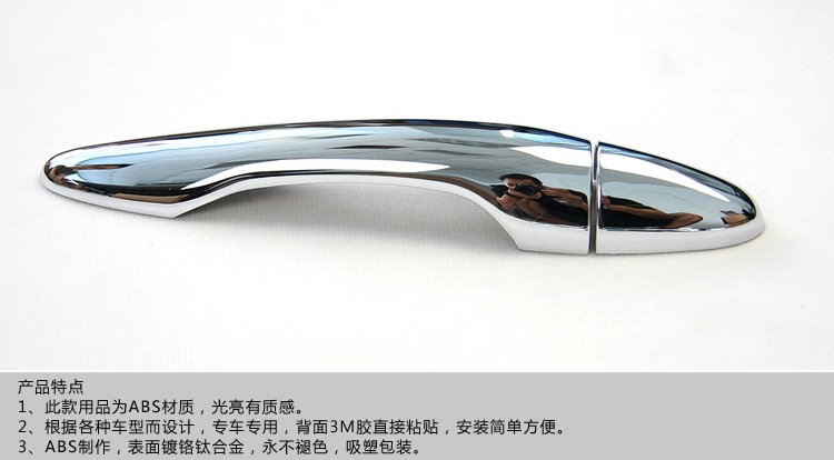 【產品簡介】ABS電鍍,模具制造,可有效保護車把手易磨損部位。不僅能保護您愛車的門把手不受損傷,而且精致、華麗的外表盡顯您愛車獨特魅力,是車友必選的基本內飾。