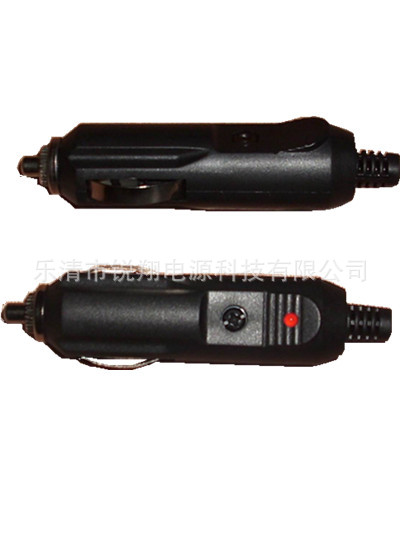 廠傢銷售汽車點煙器插頭 ,帶指示燈,有保險管 。規格有3A,5A,7A,10A,15A點煙器插頭,殼體采用耐火材料壓制而成,外觀漂亮性能穩定,(中間焊正極,兩邊焊負極)。