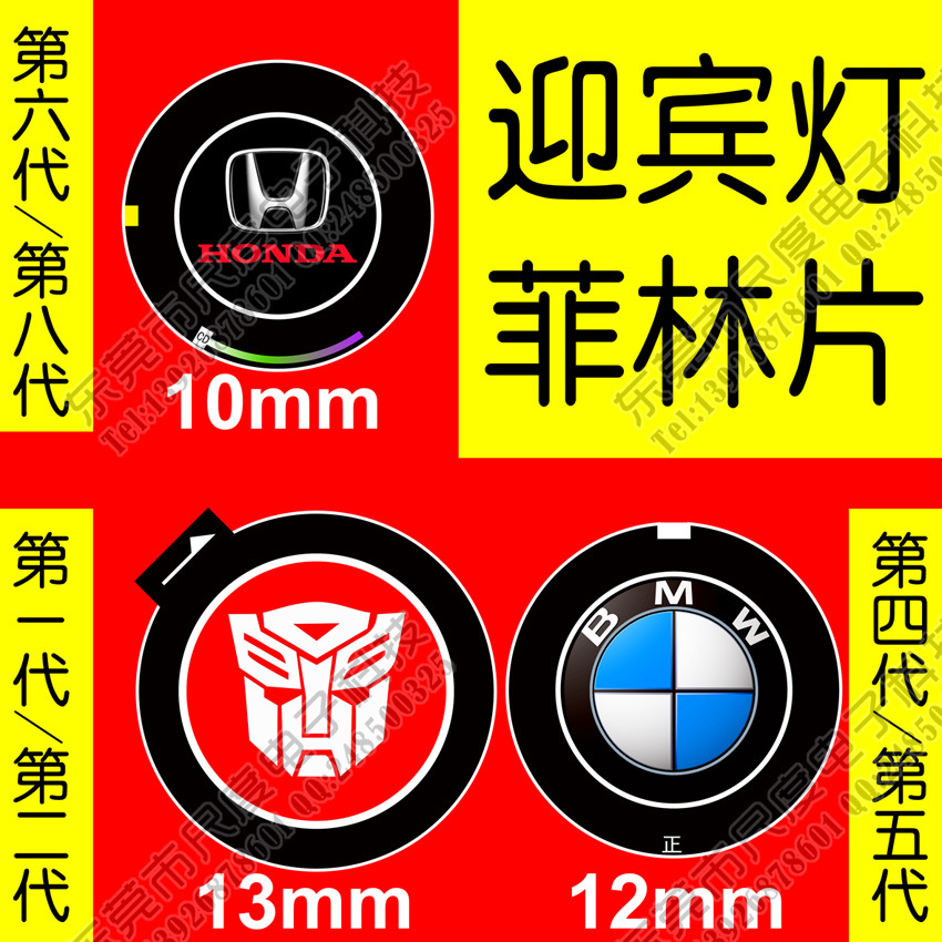 本產品專用於汽車迎賓燈(車門燈,照地燈),二代四代五代六代八代,陸續更新。。。投影圖案可以是車標,本公司自主設計車標一百多套;也可訂做個性簽名,個性化彩圖,提供令人賞心悅目的光影效果,視覺盛宴酷炫至極,並具有一定照明效果。
