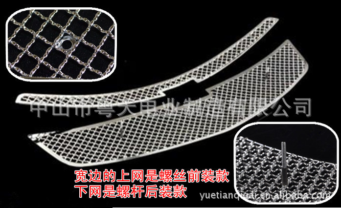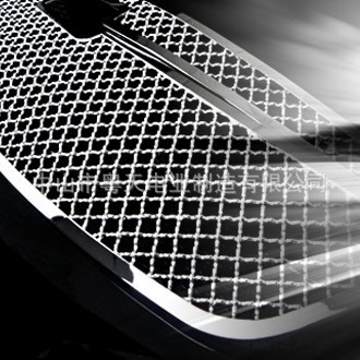產品是由不銹鋼材質的網狀編織壓輒而成,網狀形狀中,每條相交的線都會產生多個棱形,每個棱形到成品後都是一個反光面。再經過多層次的加工成型,成品與原車中網完全貼服。我們的產品都是經過原裝車模試裝才出貨的。產品具有高度的貼服感。產品經過編織-定型後,再由我們的師傅拋光打磨,務求使產品表面光滑,不刺手,安裝後可以用幹佈經常擦拭,不會刺手。保持中網的金屬亮度。最後經過高品質的電鍍。電鍍後,產品表面的棱形反光面在光線下透出強烈的金屬感。令你的愛車前臉充滿活力和質感。