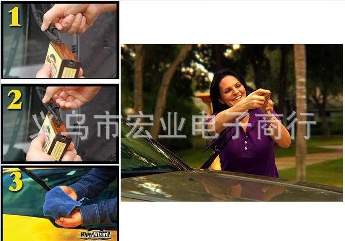 Wiper Wizard Windshield Wiper Blade Restorer Wiper Wizard transforms your streaking, creaking wiper blades from rough to solid edge in seconds! The Wiper Wizard will save you the hassle of changing your wiper blades, save you money and improve drivability and safety. The Wiper Wizard will clean and sharpen the blades restoring complete windshield contact for better performance. Just simply slide the Wiper Wizard onto the edge of the wiper blade and slide back and forth over the entire blade. Then just wipe away any excess debris with the included microfiber cloths. Your wipers will work like new again maintaining visibility and improving driving performance. Features: Make your wiper blades streak free Make your wiper blades noise free Make your wiper blades safe Includes: Wiper Wizard 5 x Microfiber cloths Instructions