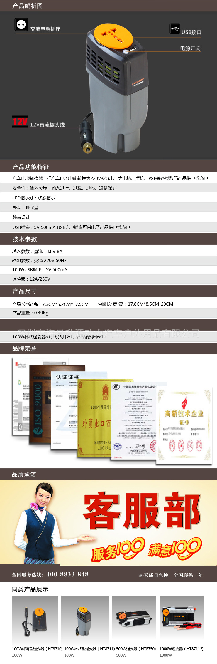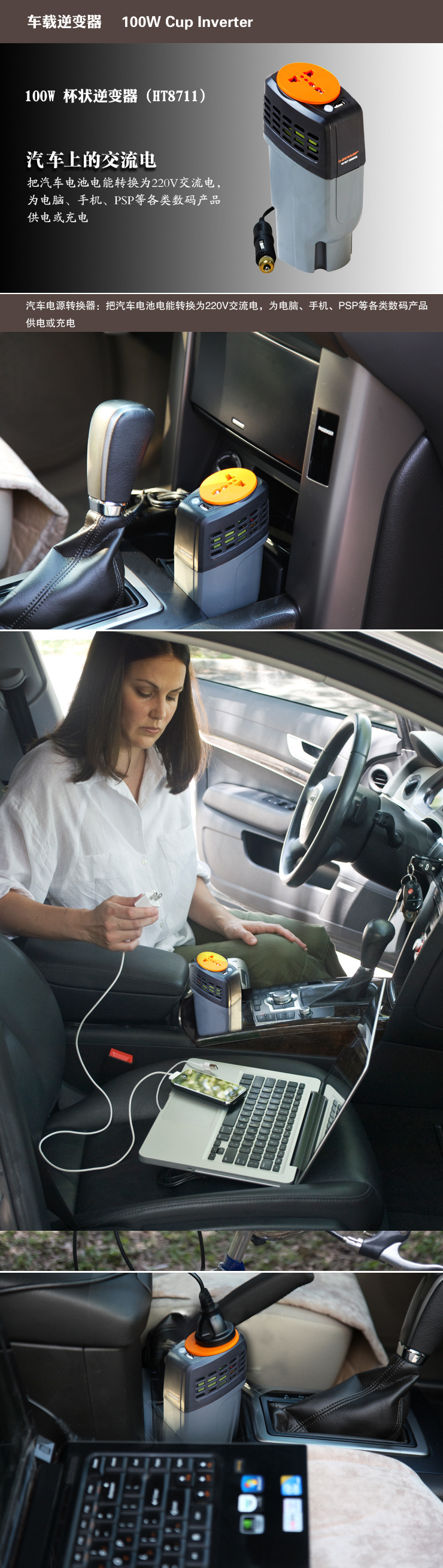車載逆變器、汽車轉換器、 100W杯狀逆變器、汽車電源轉換器