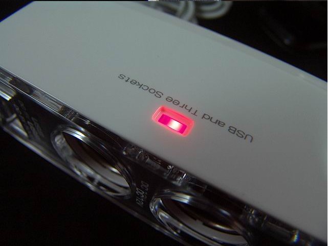 3、點煙器插座中帶有LED燈,通電後呈現出澄澈的藍色光彩(說明:燈