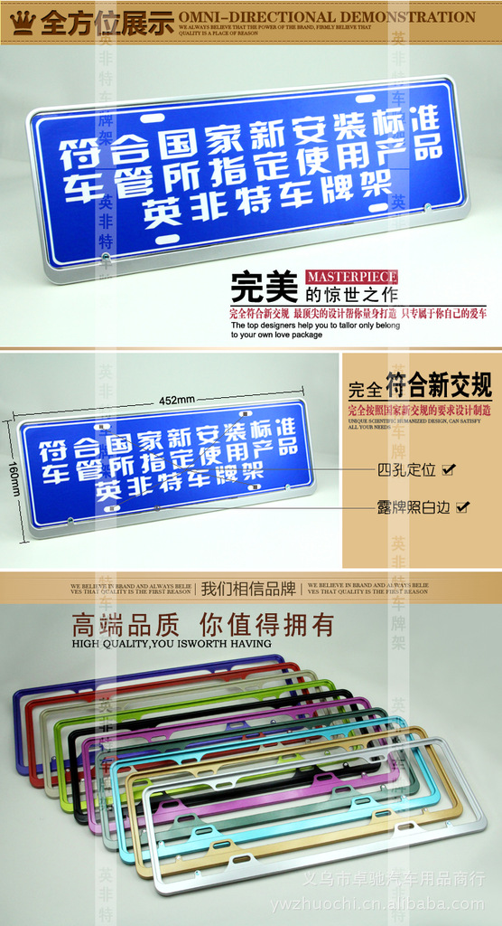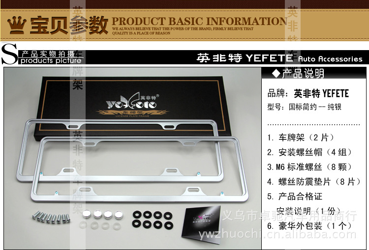 英非特 國標簡約款 新交規 鋅合金汽車車牌架 牌照框架 車牌框