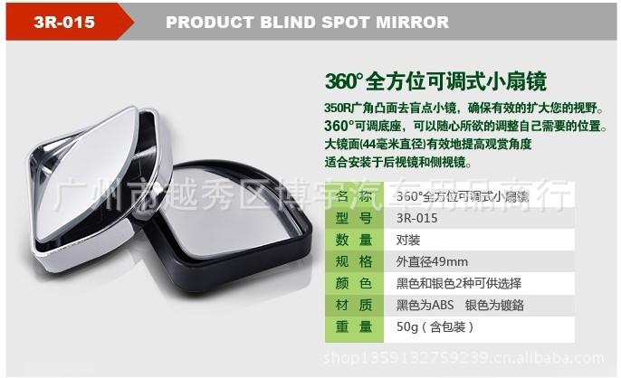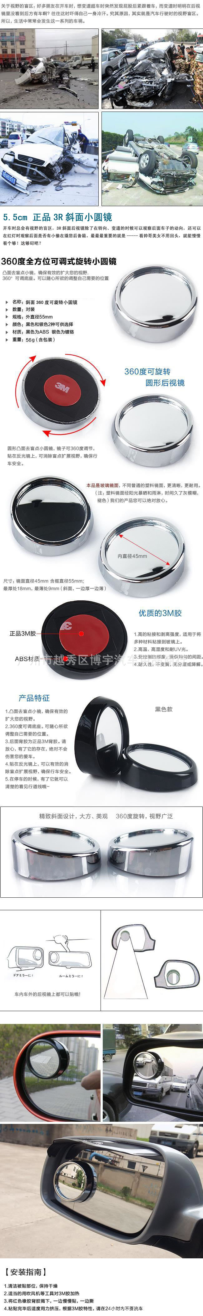 產品介紹:3R無盲區360度大視野廣角鏡,保持曲面,圖象完美,失真小,夜間行車防眩目,不刺眼,提升安全。.為你提供更寬與更清晰的視野,讓你的行車安全更有保障。