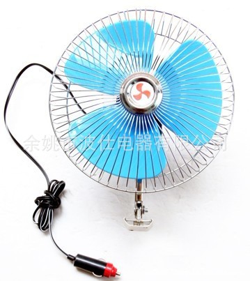 用立式搖頭,快慢擋調速,帶夾座,外觀新穎小巧,低噪音,節能機芯.本汽車風扇是采用小型永磁直流電機做機頭,具有造型美觀、安裝方便、噪音小、耗電省、風量大等特點,扇面鋼質噴漆處理,設計輕巧實用.