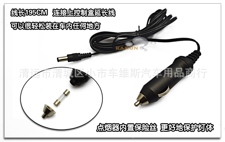 安裝指南:不對原車電路做任何更改,直接把冷光燈貼在側擋風玻璃或後擋風玻璃上,電源插頭插上點煙器通電即可。