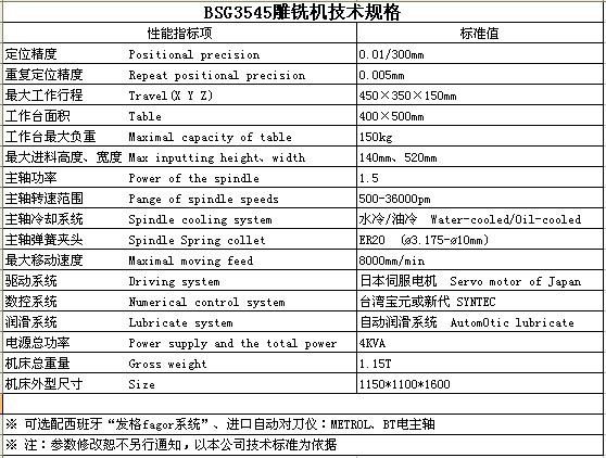 本機床是集雕刻和銑削功能為一體的數控雕銑機床。主軸轉速高,進給速度快,能方便地在各種材料(如:鋁、銅、鋼等金屬材料和各類非金屬材料)上雕刻出精細的圖形文字形象和三維 浮雕。同時本機床具有銑加工能力,可以進行精密加工,使生產效率大大提高。