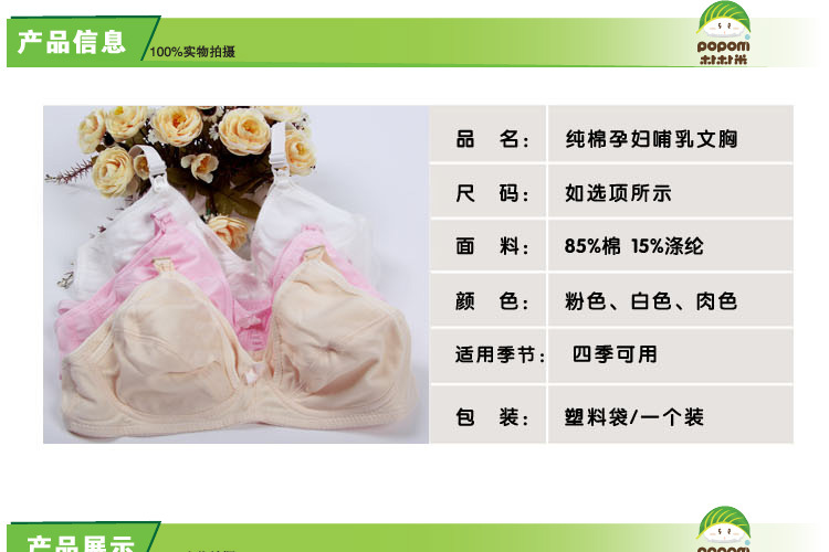 特別設計可調式活扣,更好的方便喂養寶寶,配一對防溢奶乳墊,更舒適,輕松。款式美觀,人性化的體貼關懷設計,包容承托性強,防止乳房下垂保持健美,專用胸罩是活動紐扣可揭開喂乳,使用方便。