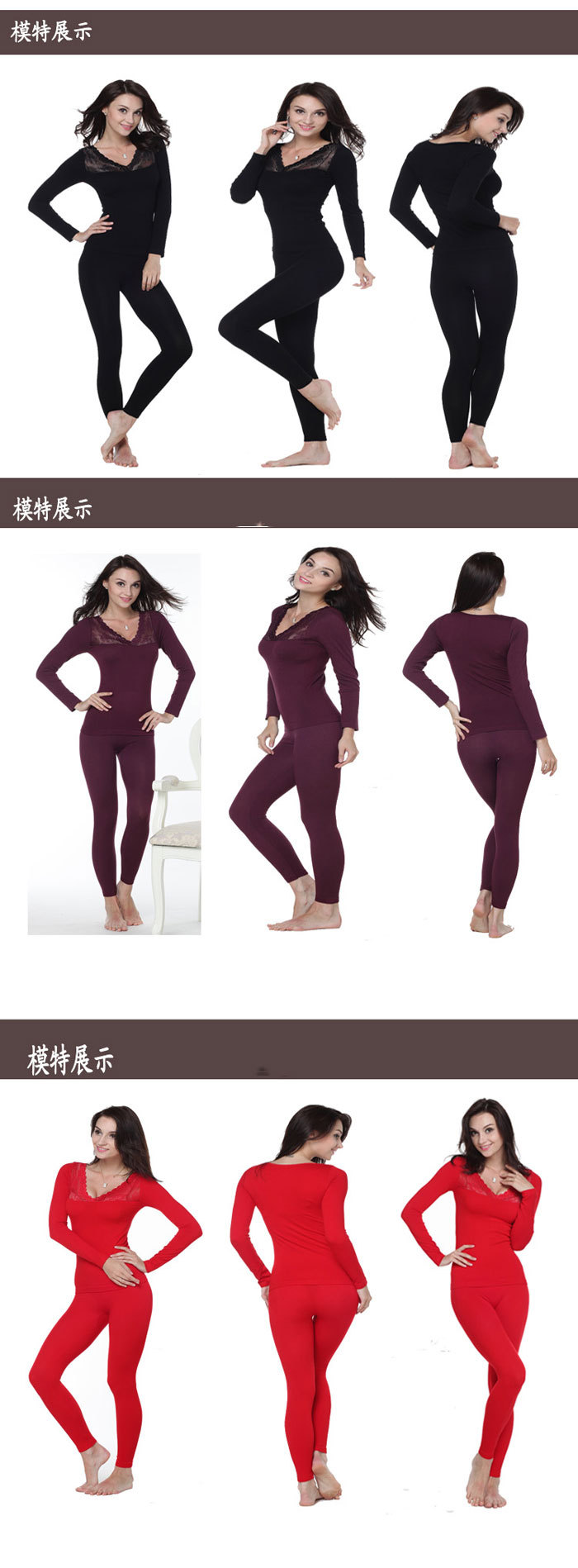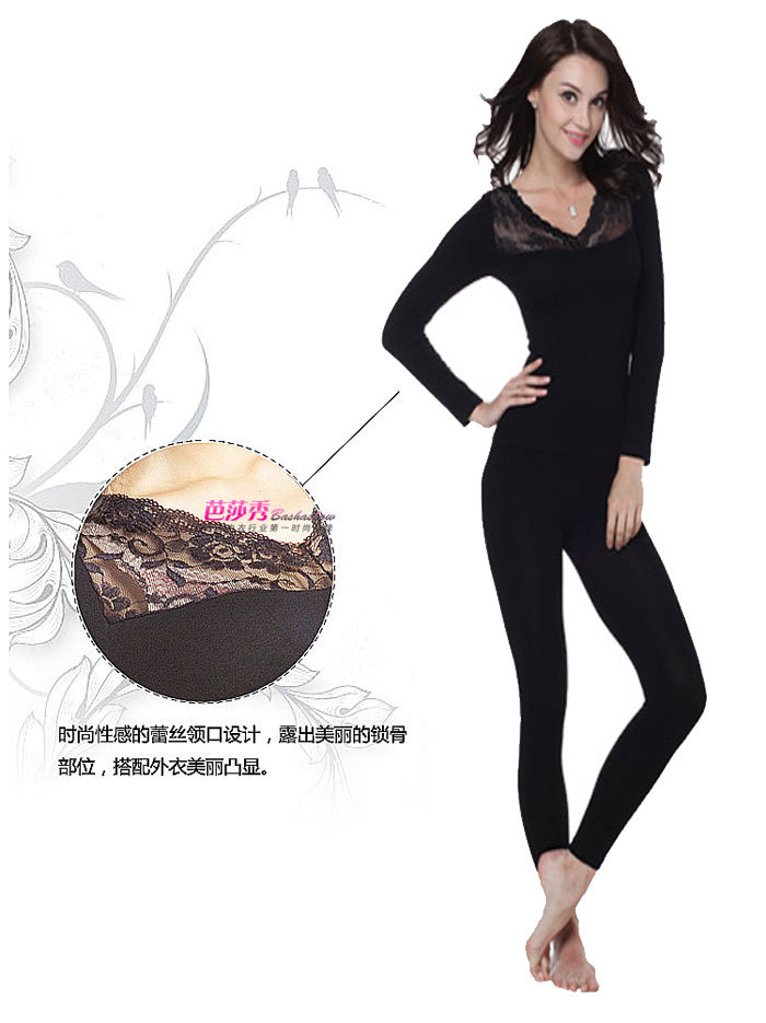 【品名】:新款蕾絲花邊大V領無縫美體內衣打底衫套裝批發
