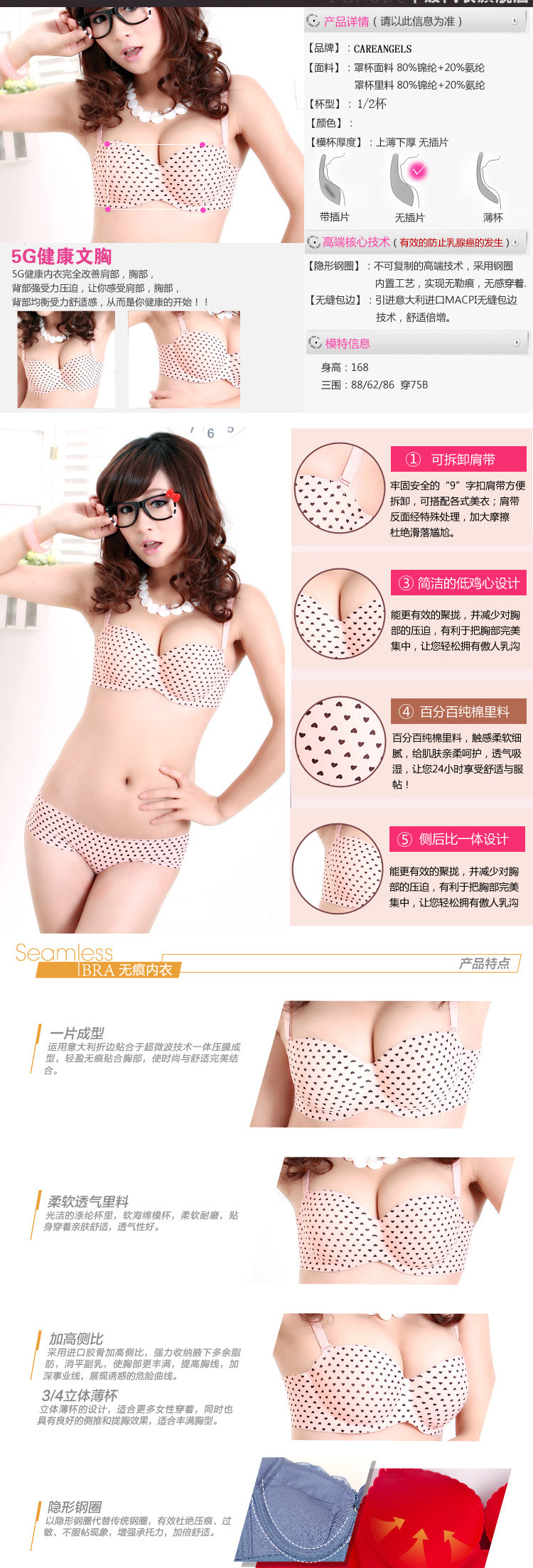 廠傢直銷上薄下厚性感可愛婚紗禮服1/2杯U型一片式無痕文胸內衣