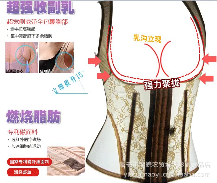 法國經典設計,引領國際潮流。經典貓背夾款式設計,轉移副乳。腋下加高設計有效側攏防松垂,加寬肩帶不易滑落,完美胸型一攏而成。美背“U”型穿著無痕,自然舒適。醫用磁片與幾丁質、生態素,加快血液循環,促進新陳代謝,迅速燃脂塑身,塑造完美曲線。