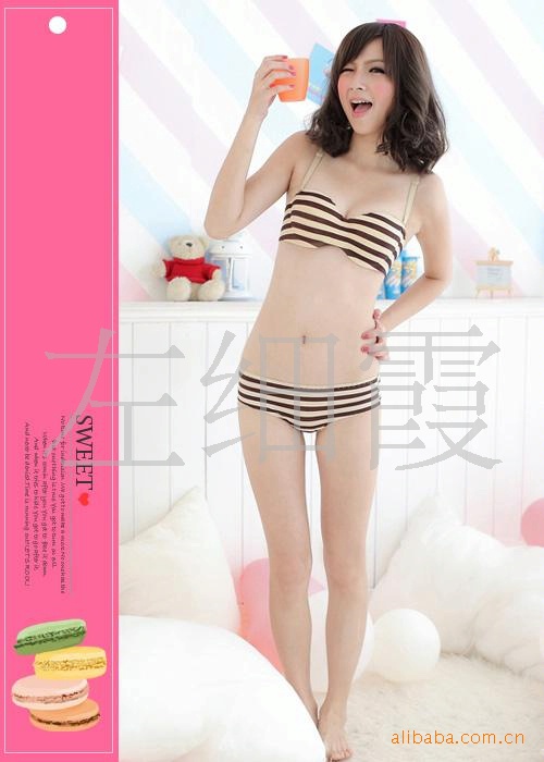 顏色:黃配咖啡全套裝:內衣+內褲