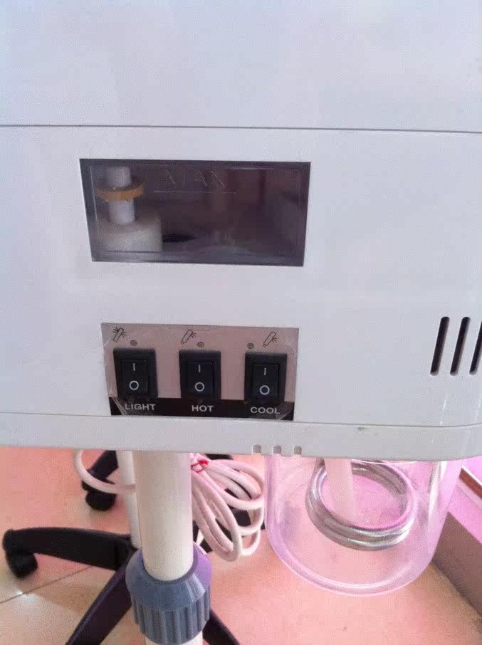 店主答:有極個別親試機後反映冷噴霧氣不大的問題。有個非常簡單的解決方法,在冷噴壺裡加入自來水,然後加入少量食用醋,融合後稍微過一會兒後把水放掉,然後再加入自來水試冷噴,經過這個方法後冷噴霧氣絕對就大瞭。原因是因為噴霧機在出廠時也會試機,冷噴壺裡的冷霧片接觸過水源,從出廠算起到機子來到您手上,可能已經經過瞭個把月,這就導致瞭冷霧片上積瞭一些些水垢,所以影響瞭冷霧的效果。用食醋恰恰去掉瞭那點點水垢。機子用久瞭導致的霧化片積瞭水垢的問題,也同樣可以用這個方法解決。