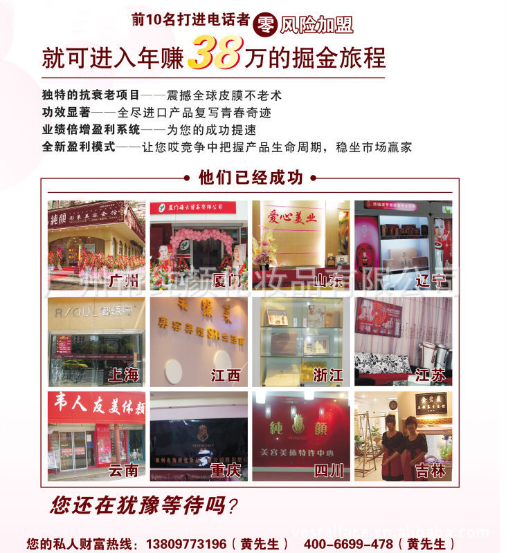 純顏公司是以美容項目加盟為主的專業美容加盟項目公司,主要涉及美容項目加盟,美容加盟項目,美容院美容加盟,廣州美容加盟,美容加盟代理,美容儀器加盟,美容加盟熱線。純顏公司是美容儀器,美容護膚品結合成的專業美容加盟項目公司,提供抗衰,祛皺,美白,嫩膚,緊致等高科技美容加盟項目,為肌膚帶來光滑,彈性,飽滿,亮白的美容加盟產品.美容加盟熱線:13809773196