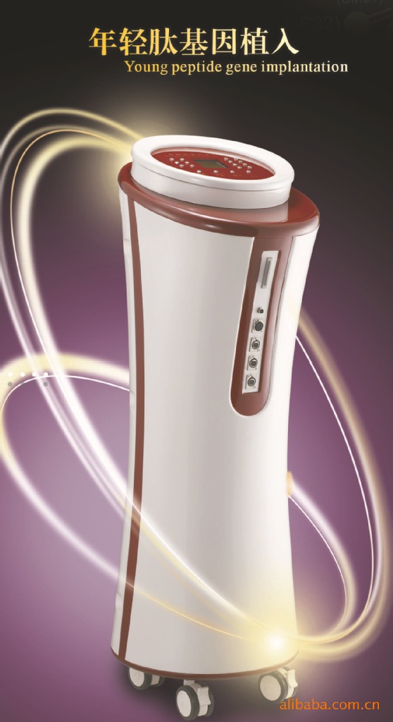 尖端抗老化科技的最新傑作,針對衰老肌膚而設計。年輕肽基因植入儀是結合當代生物醫學、細胞學、中醫經絡學、基因突變學說,以及電子學、材料學等為研究基礎,以健康人體固有的光、電、磁物理數值為依據,產生人體細胞基因必需的生態性生物聚合能量美容儀器。儀器的能量源可以直接穿透各種機體組織,並通過經絡系統、淋巴系統、神經系統、體液循環系統等各個組織系統的傳導通道進入細胞內部,補充細胞基因DNA必需的物理能量,提高細胞抗氧化能力,防止細胞因缺乏能量,而造成細胞過早退化、衰老、死亡;強化細胞的新陳代謝和免疫功能,排除沉積在細胞內的毒素因子,恢復微量元素生物的順磁性。在儀器生物物理能量作用下,使細胞物質交換和能量補充的通路保持通透性。細胞基因能量植入儀的能量源,是激活免疫細胞的能量源,可以直接破壞非良性細胞的生存物理條件,防止和終止因化環境污染、食物污染等因素而造成的皮膚問題,從而達到抑制非良性細胞的活性,促使其衰退、死亡、液化並排出體外的效果目的。為歲月註入活力,綻放生命之春。令肌膚恢復年輕時的彈性與光澤,如水凝潤、如絲細滑!