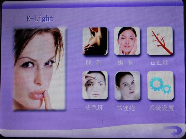 E-light takes strong pulse IPL and bipolar radio frequency electromagnetic wave with special width-spectrum, selectively acts on target texture, to do skin rejuvenation, freckle removal, hair removal, wrinkle removal effectively. On treatment if 5 to 10 times than traditional photon therapy.