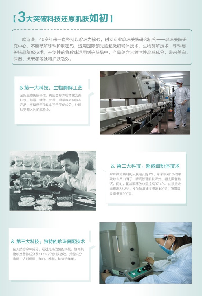 珍珠粉、虎杖(POLYGONUM CUSPIDATUM)根提取物、靈香草(LYSIMACHIA FOENUM-GRAECUM)提取物、女貞(LIGUSTRUM LUCIDUM)提取物、風信子(HYACINTHUS ORIENTALIS)提取物、白羽扇豆(LUPINUS ALBUS)、氫化卵磷脂、膽甾醇、神經酰胺2