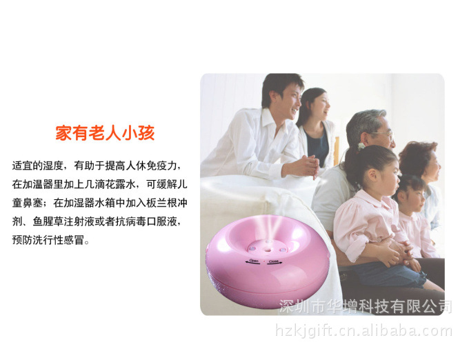 隨著人們生活水平提高,空調廣泛使用,導致皮膚緊繃、口舌幹燥、咳嗽感冒等空調病的滋生。本產品在霧化過程中,釋放大量負氧離子,能有效增加室內濕度,滋潤幹燥空氣,並與空氣中漂浮的煙霧、粉塵結合使其沉淀,能有效除去油漆味、黴味、煙味及臭味,使空氣更加清新,保障您和傢人的健康。