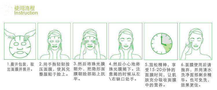 於清潔及化妝水後,撕開鋁箔包取出,敷於臉上15~20分鐘即可。配合使用精華液,搭配使用,有加乘效果。