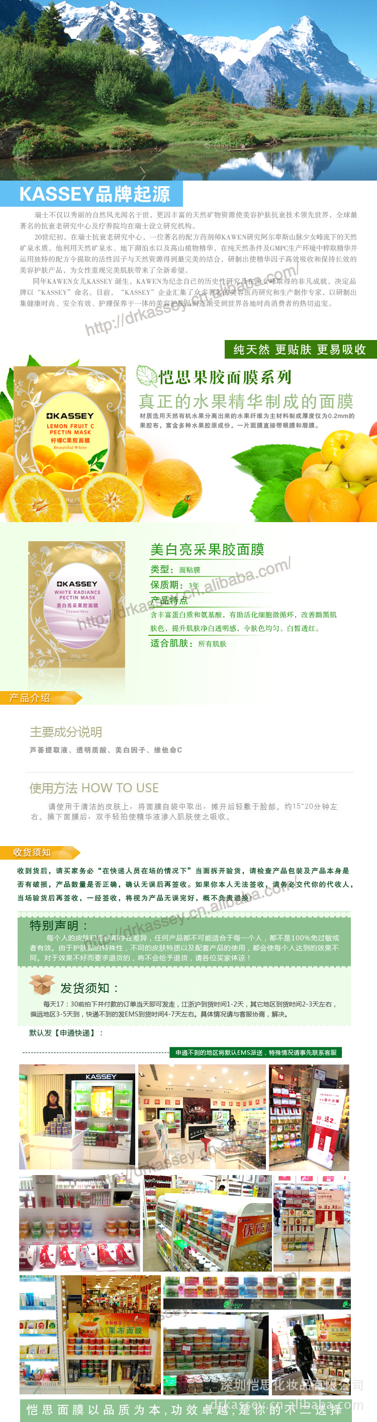 深圳廠傢直供愷思KASSEY美白亮采果膠面膜誠招全國代理批發面膜