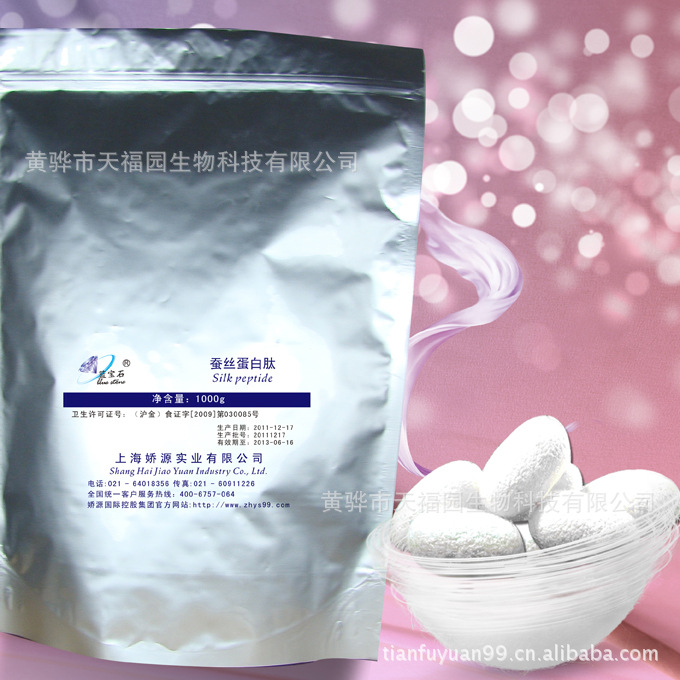 蠶絲蛋白肽系天然桑蠶絲經現代高新技術精制而成的絲多縮氨酸,絲肽是蠶絲蛋白的酶水解產物,為可溶性天然純絲蛋白,水溶性100%,極易被人體所吸收。含人體必需氨基酸,長期服用能使皮膚保水能力增強,使表皮光滑、細膩、紅潤、富有彈性。