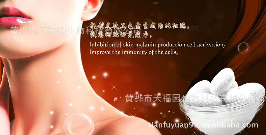 絲肽可抑制皮膚黑色素生成,黑色素是皮膚黑色素細胞中的酪氨酸在酪氨酶的氧化作用下生成的細微顆粒樣物質。絲肽可抑制酪氨酸酶的活性從而抑制酪氨酸合成黑色素。