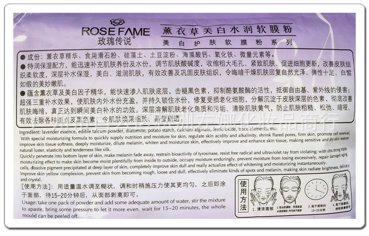 使用方法:用適量溫水調節器至糊狀,調和時稍施壓力使其更均勻,之後塗於面部,待15-20分鐘後,從面部剝離即可。